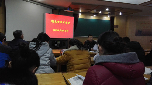 2015—2016学年上学期期末考试考务会在多媒体教室举行。2015-2016学年第一学期期末考试时间确定为2016年1月24至27日四天进行。教师发展中心主任张守明部署相关工作,高一高二全体教师及部分行管教师参加。