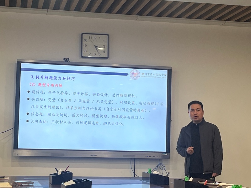 随后,郑州市第四高级中学的陈慧斌老师围绕《高三二轮复习之思考和建议》进行专题分享。陈老师结合高三教学实际,从二轮复习的时间规划、核心任务落实、错题高效利用及课堂模式优化等维度进行系统阐述。他强调,二轮复习应坚持“回归教材夯基础、专题突破强能力”,并大力推行由“输入型学习”向“输出型学习”的转变,为高三生物备考提供了清晰、可落地的实践路径。