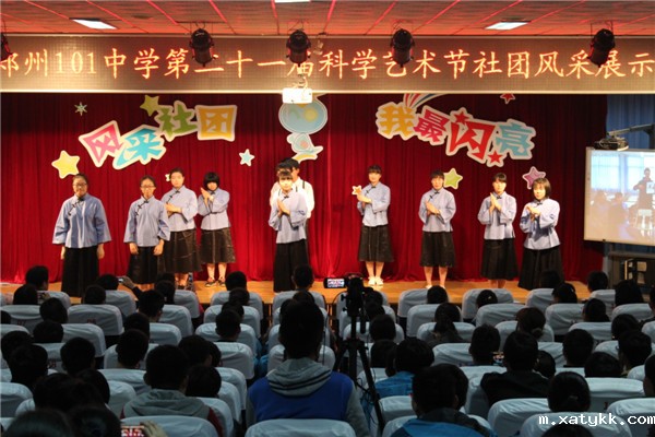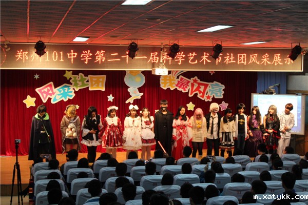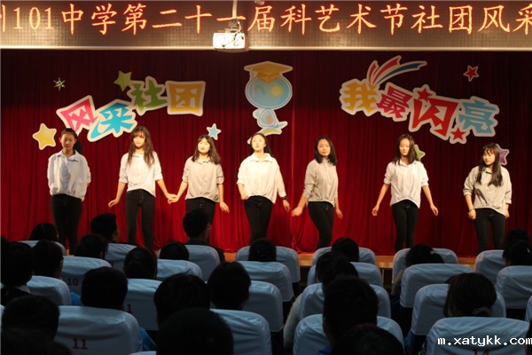 在展示现场,各个社团发挥自身优势为在场师生奉献了一个个精心编排的节目。广播站的诗朗诵《相信未来》融入舞蹈、音乐多重元素,以朴实的语言、饱满的情感抒发了对未来的美好憧憬;心理社的手语舞《我最闪亮》最大限度地发挥社团成员的主动性和参与性,给每一位社员一个展示自我的平台;英语社的歌伴舞《You belong with me》充满异域风情,吉他伴奏,音律灵动,社员们在音乐中舞动青春;动漫社的《cosplay show》带领同学们感受二次元世界;音乐社的歌曲表演 《天籁之音》更是让在场观众领略了音乐的魅力,时而清脆宛如百灵,时而声音浑厚宽广,社员的钢琴独奏更是为节目增色不少;黄河文学社的话剧《在国旗下演讲》将101中学厚重的历史底蕴和一代代扶轮学子的爱国热情在表演中呈现出来,铮铮爱国情感动着在场的每一个人。觉韵演讲朗诵社带来的情景剧《播音课堂》诙谐幽默,同学们表演栩栩如生,引来台下一阵阵的掌声和笑声;光影艺术社更是别出心裁,将荧光棒的闪光效果注入舞蹈当中,充分展示光影魅力。