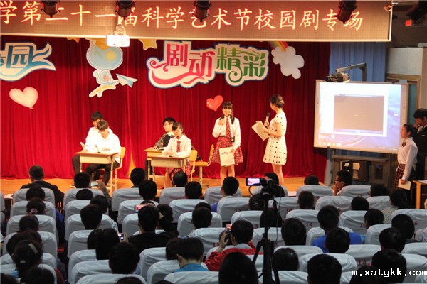 “青春,是一首动人心弦的乐曲,让我们用灵魂跳动的音符标记精彩的乐章;青春,是一个光彩夺目的聚光点,让我们用欢声笑语记录着难以忘怀的成长……”48日下午,伴随着主持人热情洋溢的开场白,同学们期待已久的科学艺术节校园剧演出正式拉开了帷幕。