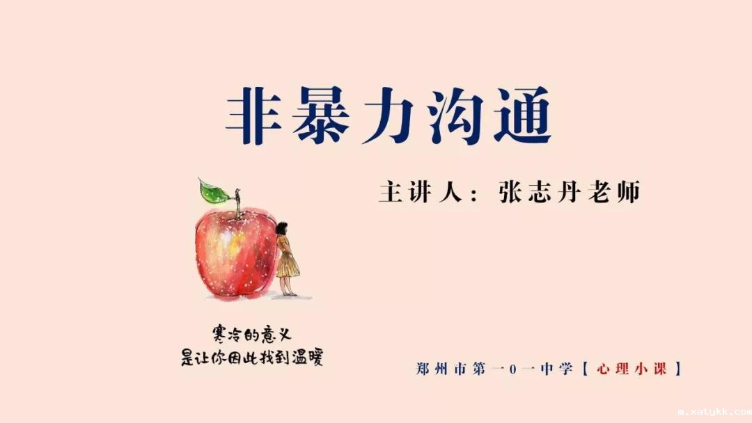 我们第四期《知心夜话》栏目和大家分享的内容是“话要好好说”。本节课,我想要和大家讲的就是如何好好说话。不知道最近,同学们有没有和自己的家人闹别扭,是否话不过三就冷战。这里,和大家分享一本书《非暴力沟通》,这本书给大家介绍了一种沟通方式,即如何转变谈话和聆听的方式来减少人与人之间因为语言带来的痛苦。作者相信,人天生热爱生命、乐于互助,但是语言及表达方式却使得日常生活中充满了痛苦,就像我们和自己的父母,我们是彼此最爱的人,却又是折磨最深的人。“相爱相杀”。作者提出了“非暴力沟通”这种沟通方式,来明确自己和他人的观察、感受、需求和请求,进而达成双方之间的情意相通、乐于互助。我们一起来了解一下这个沟通模式(如果家长在家,邀请一起来听这节课):
