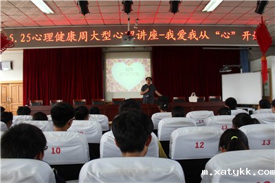 2015年5月27日下午第三节课,阶梯教室不时传来一阵阵的欢笑声,这里正在进行525大型心理讲座——我爱我,从心开始,主讲人国家二级心理咨询师马歆源老师幽默风趣的语言风格让大家在轻松愉悦的氛围中领悟和收获。