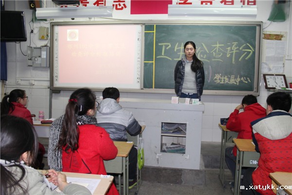 近期伴随着校园文明礼仪活动的开展,学生发展中心也加大了校园卫生检查力度,提高了卫生检查的标准。每天早晨,大家都能看到学生发展中心的老师们在校园内督促同学们打扫卫生,各班生活委员也在本班的卫生区忙碌着,同学们的打扫也更加认真了。通过大家齐心协力、共同努力,校园卫生有了一定改观。园环境。然而,我们也偶尔会看到纸片、竹签散落在学校的楼道或花坛里,楼梯上时有口香糖的污迹。我们也会在检查时发现有些班级卫生打扫的质量依然有待提高。为了让我们的校园更加整洁、美好,学生发展中心对之前的卫生检查标准进行细化,明确指出各班打扫的重点,也让检查员们进行评分时更加有据可依。
