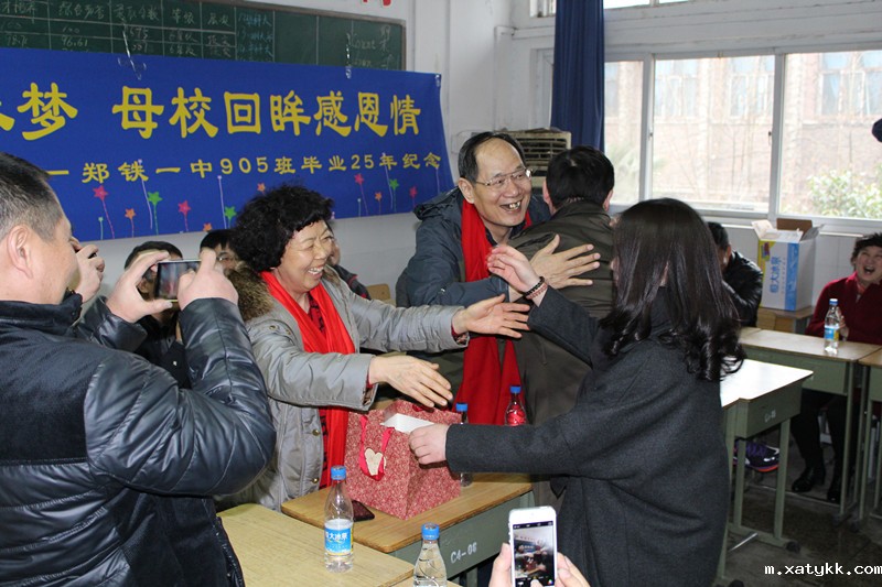 经过组委会的精心筹备,来自全国各地的校友如期而至。此次联谊会的主题是“同窗共忆青春梦,母校回眸感恩情”,带着对母校的眷恋、对老师的感恩、对同学的情谊,大家再次齐聚在25年前上课的教室,和老师、同学互致问候,亲切握手和拥抱,教室里充满了洋洋暖意。
