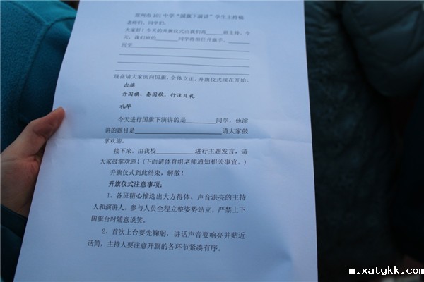 新学期开始,为进一步规范升旗仪式及国旗下演讲,学生发展中心的陈波主任上周五利用课外活动时间,对高一高二各班团支书及本周国旗下演讲的同学进行了国旗下演讲礼仪的培训,陈主任的讲解耐心细致、注重每一个细节。内容包括:主持人和演讲人从哪边上台、在台上站立的位置、讲义夹放在哪只手上、先鞠躬、调麦克、讲义夹左手托着打开、讲完后合上讲义夹放左侧、鞠躬向右转身下台……,同学们认真听讲并细心做笔记。