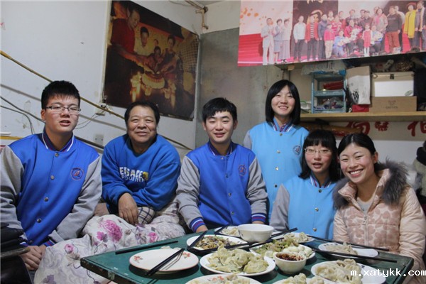 还没进门,大家便听到屋内阵阵的笑声。高叔向同学们介绍着他的邻居和和朋友们:这里有陪伴照顾他快半个世纪的发小樊石头;有他的中学同窗好友——101中学的退休老教师熊蒂;也有认识仅仅一年多的同龄人——知青志愿者。陇海大院的老朋友赵新义一直在厨房忙碌着煮饺子,不一会儿,另一位大院的老邻居常思军来了,陇海大院的居委会主任井勇也来了。“他们几个和我一样,可都是原来老铁一中的学生啊”,高叔动情的说。