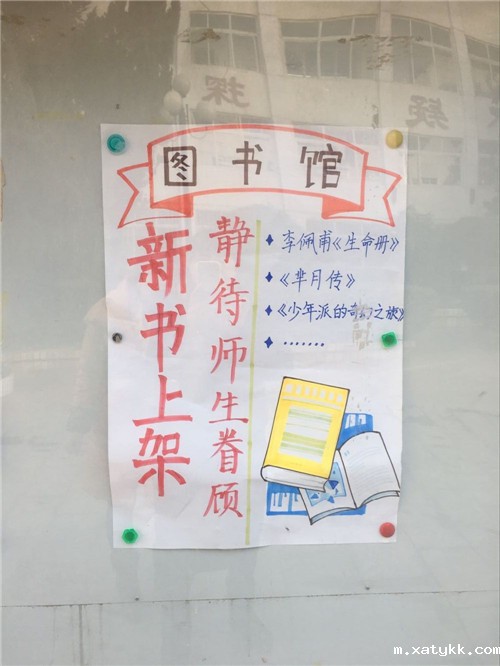 莎士比亚说过:“书籍的全世界的营养品。生活里没有书籍,就好像没有阳光;智慧里没有书籍,就好像鸟儿没有翅膀。”读书能增长知识,开阔眼界;读书能明白事理,增强能力。为营造全校师生读书的良好氛围,我校图书馆又新购进一批优秀教育类、社科类、文学类、自然科学类的图书,图书馆的老师们加班加点,积极紧张地对新书进行分类、编目、录制、上架,确保新书能尽快上架流通(现部分图书已经上架,可以借阅),并积极开展了新书推介活动。并在校园的报刊宣传栏中设立了新书上架海报,广泛宣传,为的是能够吸引更多的读者走进图书馆,充分发挥出图书馆的教育阵地作用。欢迎广大师生来图书馆借阅你们自己喜欢的图书!
