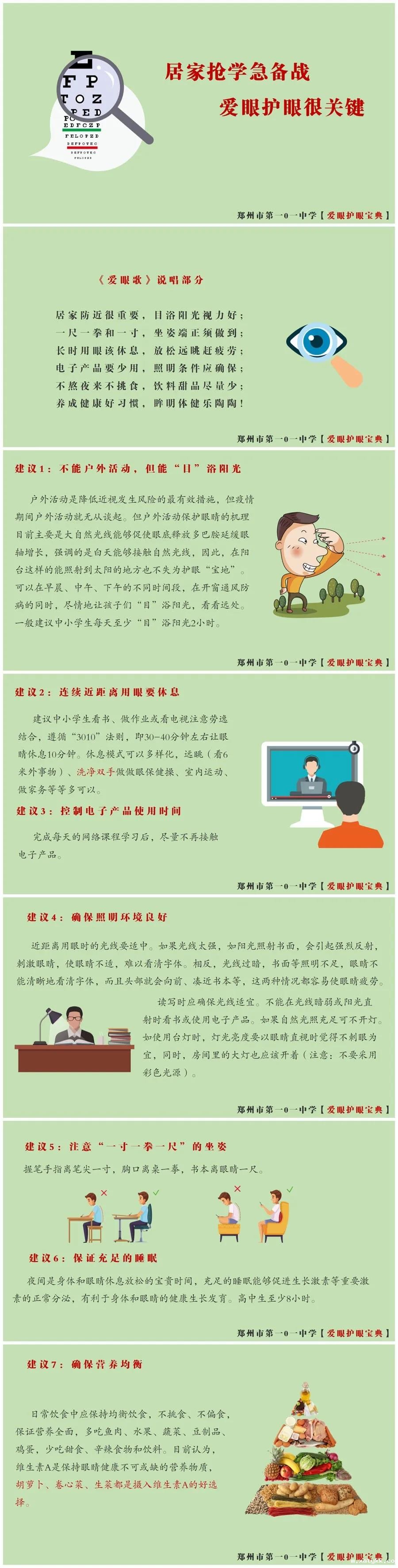 更多爱眼护眼建议请看《郑州市第一0一中学爱眼护眼宝典》