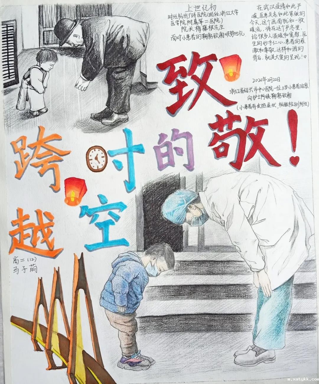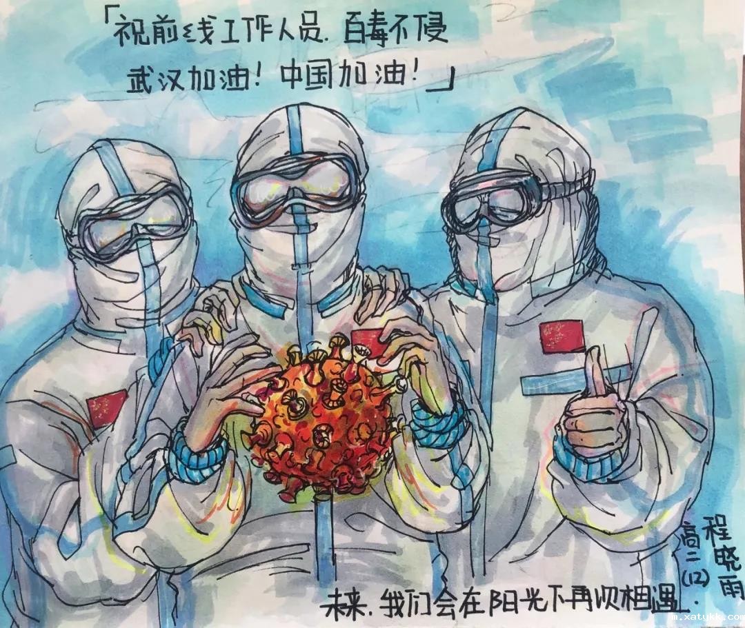 在这次活动中,同学们主动搜集素材,认真创作,拿起手中的画笔,画他们眼中的英雄,歌颂战斗在抗击疫情一线的医护人员,部队官兵及其他工作人员。同学们希望能够通过自己手中的画笔为疫区人民祈福,向医护人员致敬!他们关注的不再是明星偶像,而是疫情中涌现出的各种英雄人物,比如钟南山院士,还有医生、护士、警察、快递员、司机……