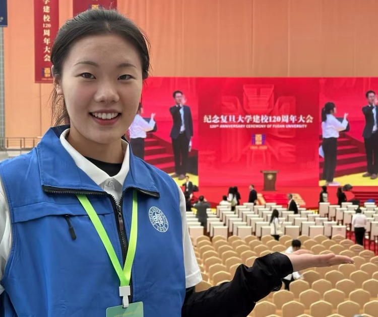 常冀豫担任“纪念复旦大学建校120周年大会”志愿者